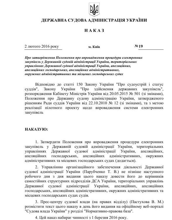 Наказ Державної судової адміністрації України від 02.02.2016 року №19