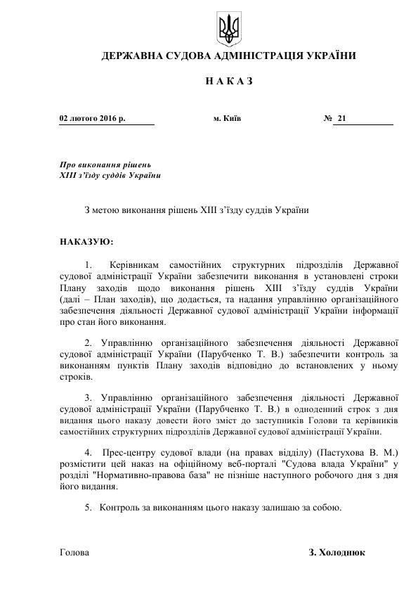 План заходів щодо виконання рішень ХІІІ з’їзду суддів України від