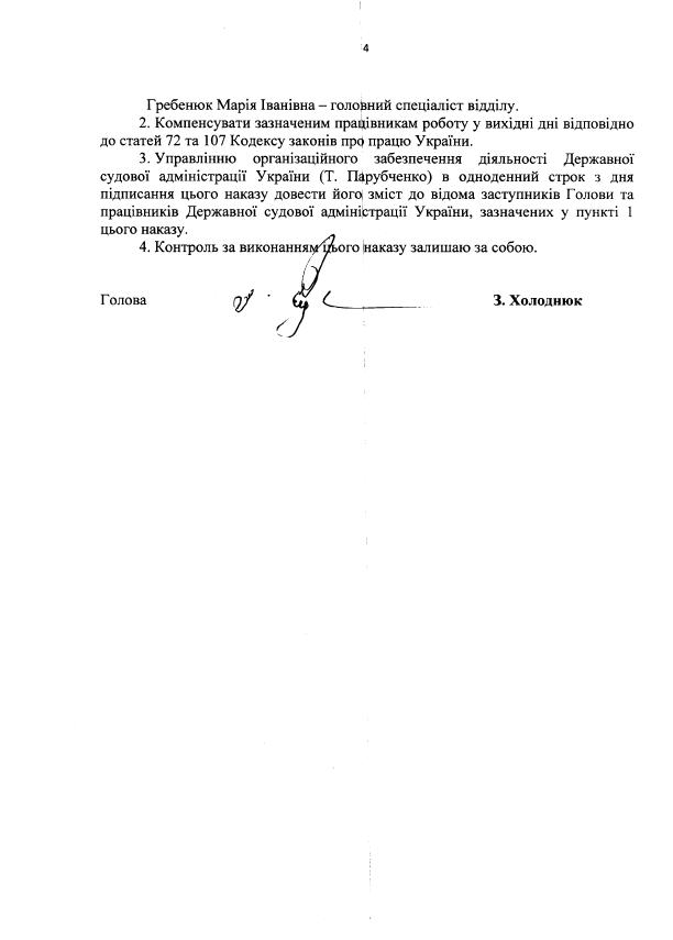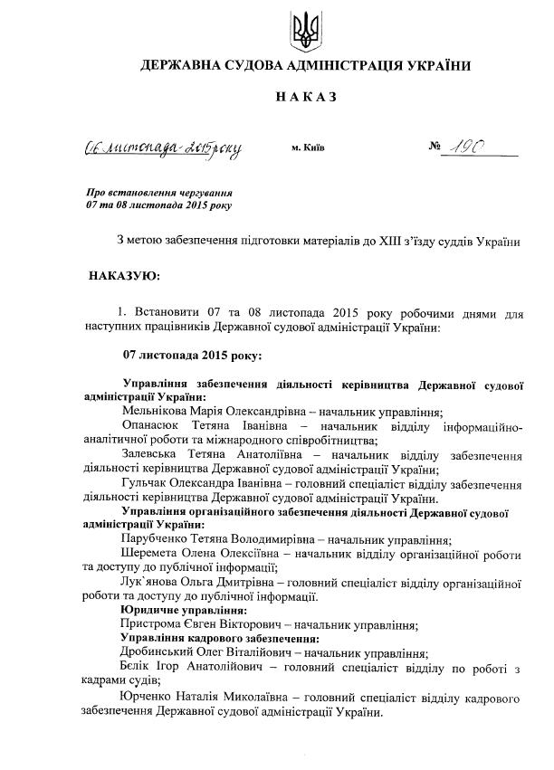 Наказ Державної судової адміністрації України № 190 від 06 листопада 2015 року “Про встановлення чергування 07 та 08 листопада 2015 року”