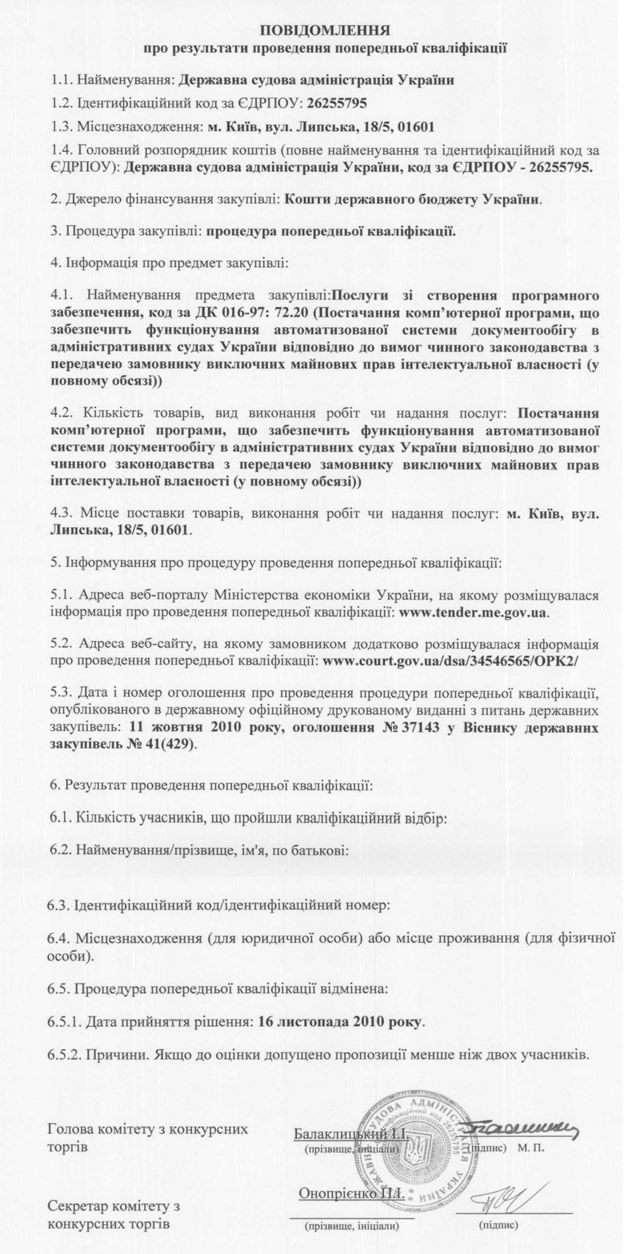 повідомлення про результати
