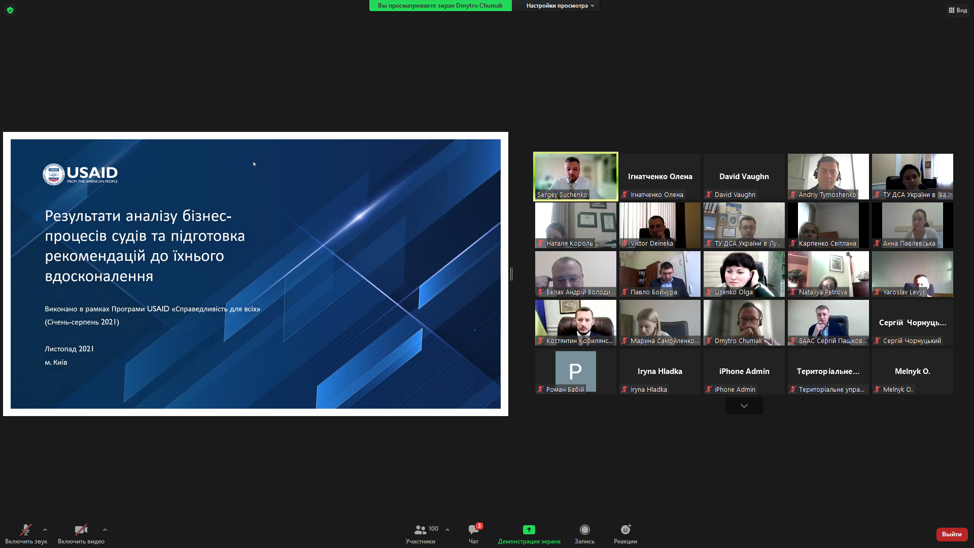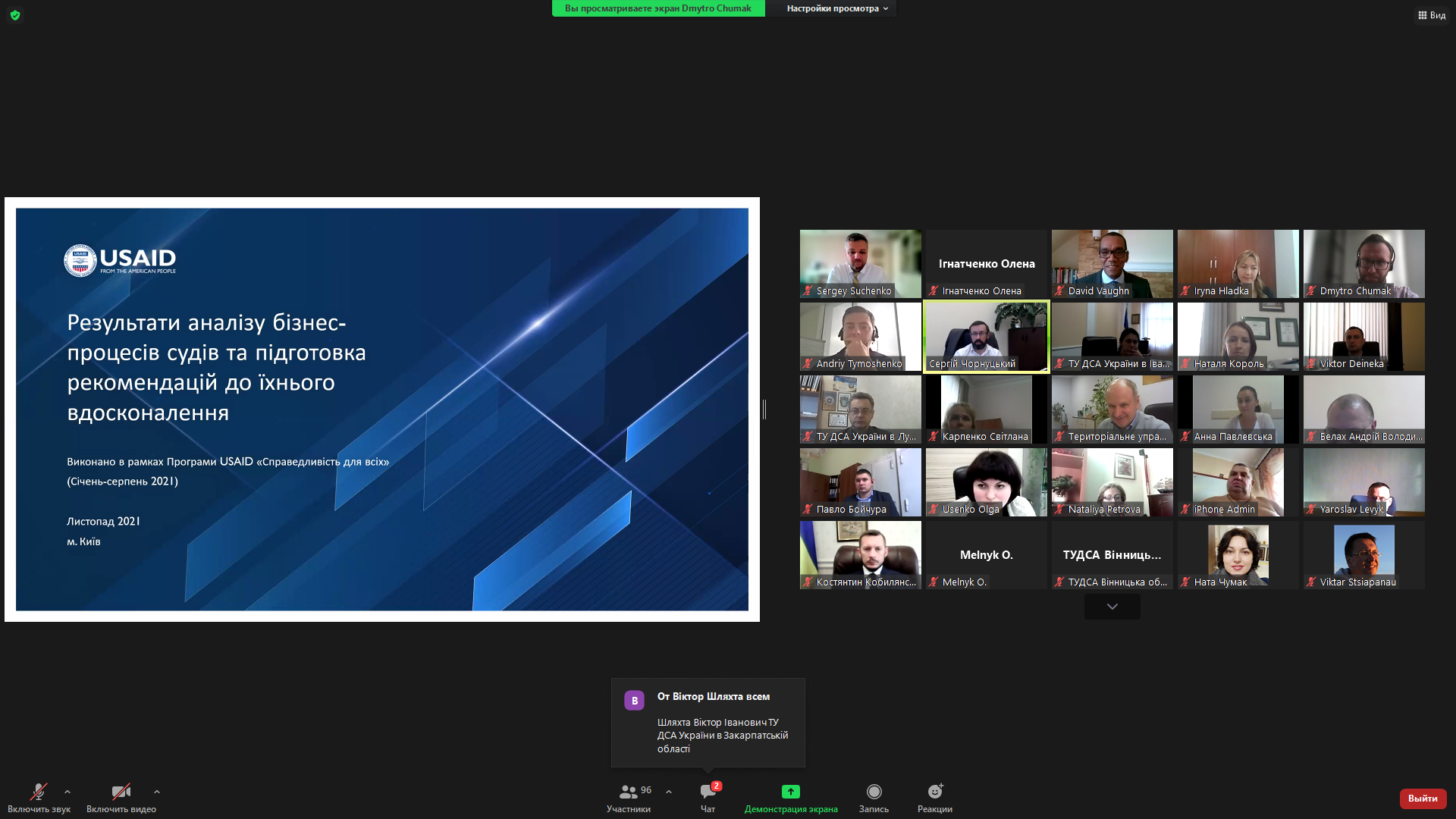 Представлено та обговорено результати аналізу бізнес-процесів судів, виконаного в рамках реалізації Програми USAID «Справедливість для всіх» на замовлення Державної судової адміністрації України.