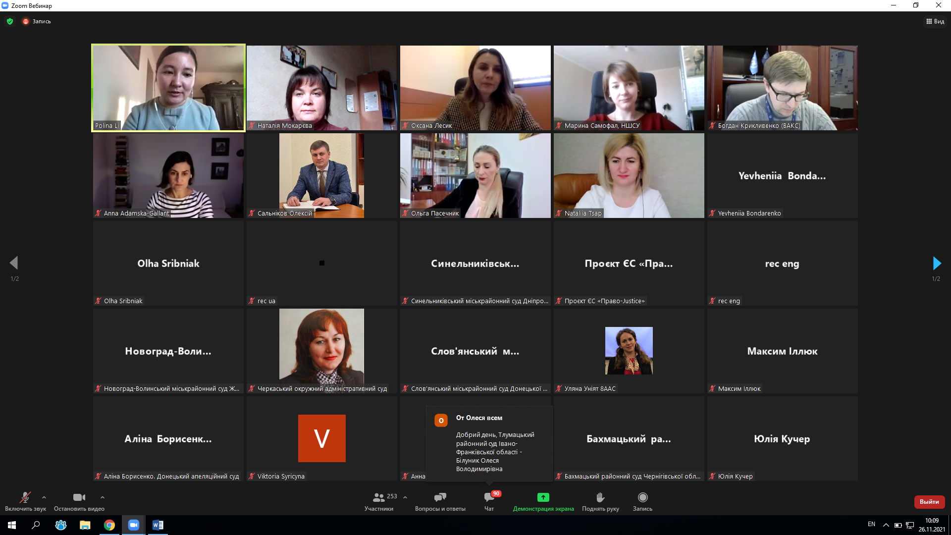 Анна Адамська-Галлант, головна міжнародна експертка з питань судової реформи Проекту ЄС "Право-Justice", у вітальному слові наголосила, що такі заходи є дуже важливими для формування та розвитку корпоративної культури в судах, а ключовою складовою ефективної роботи колективу є саме "командний дух". "Мені приємно, що перебуваючи в українських судах з робочими зустрічами я часто відчувала, що там присутній "дух команди". Закликаю всіх учасників конференції до активного спілкування та обміну досвідом", - додала Анна Адамська-Галлант.