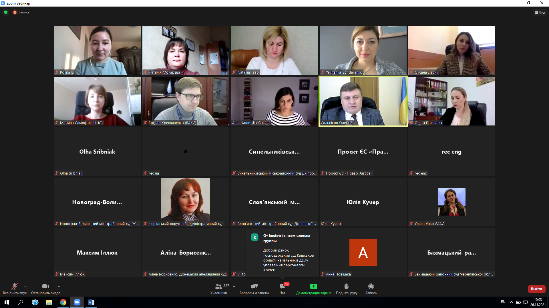 "Корпоративна культура формується завдяки поведінці, взаємодії та спілкуванню, переконанням та цінностям, яких дотримуються ті люди, що працюють у ній. Дуже добре для колективу, коли у ньому панує атмосфера взаємоповаги, доброзичливості та довіри, бо, як свідчать соціологи, в ображеної людини продуктивність праці знижується", - відзначив т. в. о. Голови Державної судової адміністрації України Олексій Сальніков 26 листопада 2021 року, відкриваючи конференцію "Корпоративна культура та етика спілкування: від слів до дій".