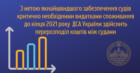 З метою якнайшвидшого забезпечення судів критично необхідними видатками споживання до кінця 2021 року Державна судова адміністрація звернулась до Вищої ради правосуддя, яка підтримала всі пропозиції ДСА України й погодила перерозподіл коштів між судами.