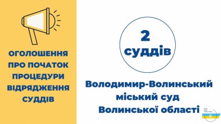 2 суддів до Володимир-Волинського міського суду Волинської області.