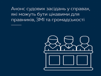 Верховний Суд України анонсував судові засідання у справах, які можуть бути цікавими для юридичної спільноти, ЗМІ та громадськості.