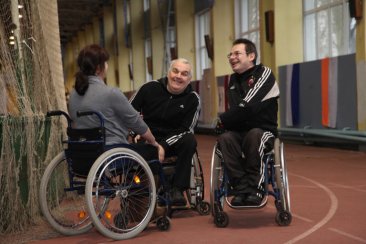 Коли Ви говорите з людиною, яка користується інвалідним візком або милицями, розташуйтеся так, щоб ваші і його очі були на одному рівні, тоді вам буде легше розмовляти.